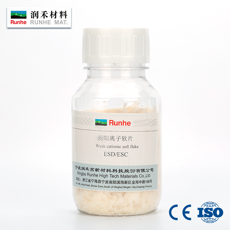 Weak cationic soft flake ESC is a weak cationic anti-wrinkle flake, applied in soft finishing of cotton, hemp and its blending fabric. It can acquire excellent soft hand feeling.